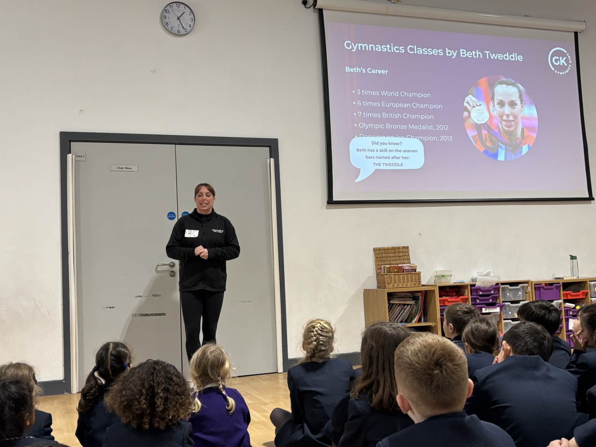 After retiring from professional gymnastics, Beth began working with gymnastics clubs and during her visit she promoted 'Gymfinity Kids' where children can take part in gymnastics and ninja.