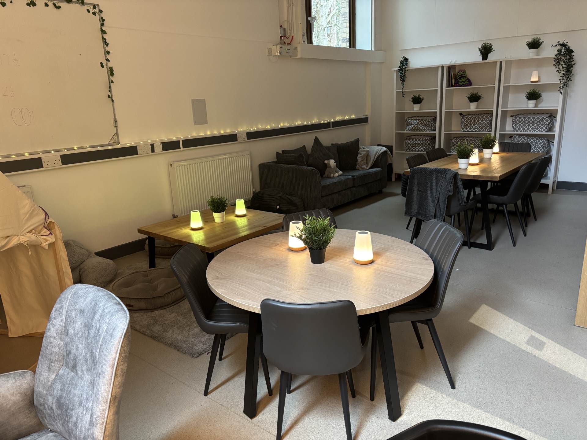 Details such as soft lighting, cosy textures and flexible seating have transformed this space, ready to support and share its calming vibes to its visitors.